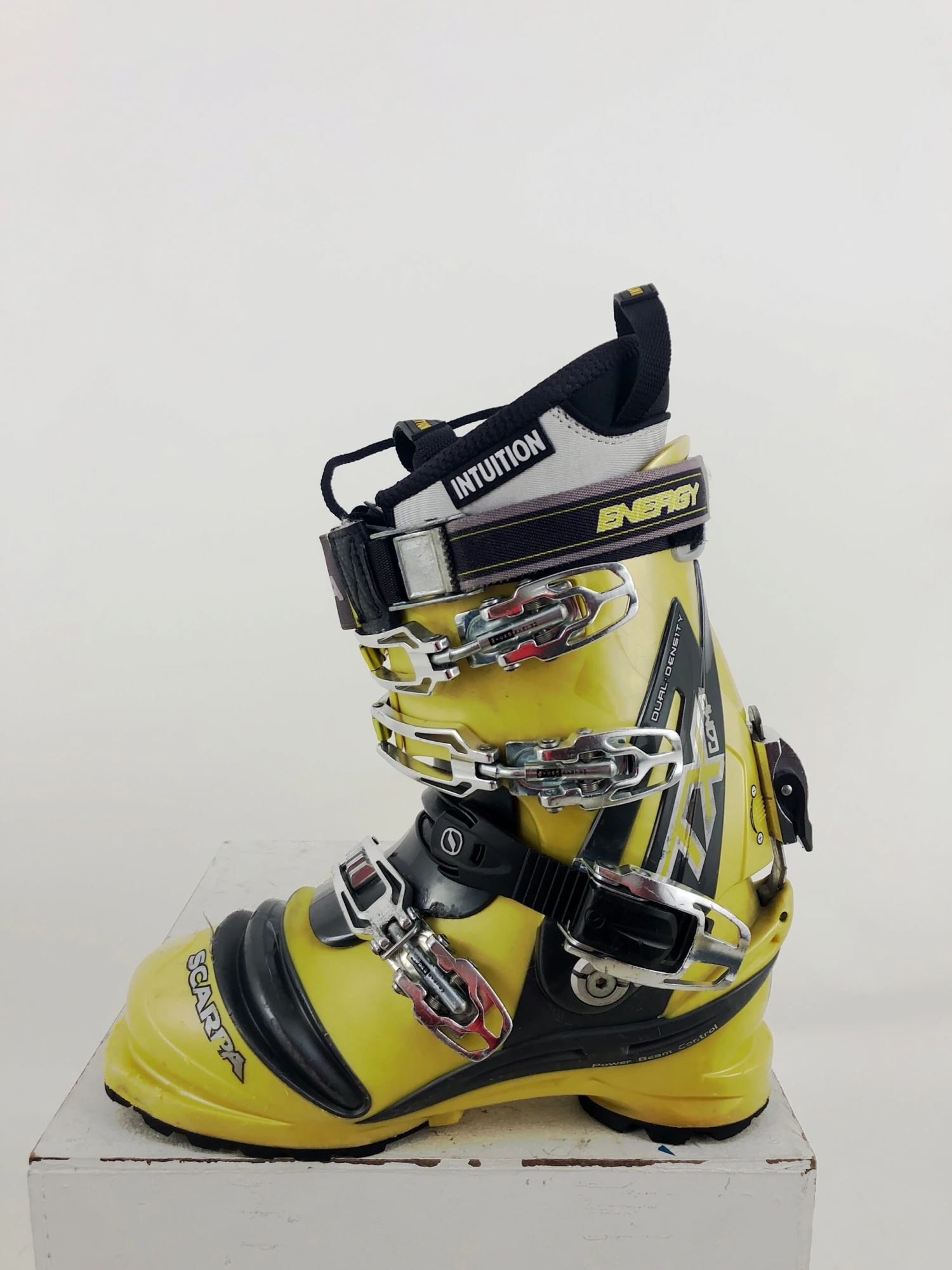 The SCARPA TX Comp is the most powerful four-buckle boot in SCARPA’s NTN family, and is the NTN-compatible equivalent of SCARPA’s famed T-Race telemark boot. Shred your favorite backcountry testpiece, or rip the resorts with superior edging, control and confidence with this hard-charging tool. The PowerBlock Tour ski/walk mechanism affords walkability without compromising muscle. A triple-injection shell with an internal torsion frame offers incredible stiffness with flexibility where needed in the bellows. Other details include a Q-Link instep strap, an Active Power Strap for increased performance and comfort, and Intuition® Speed Pro Liners.