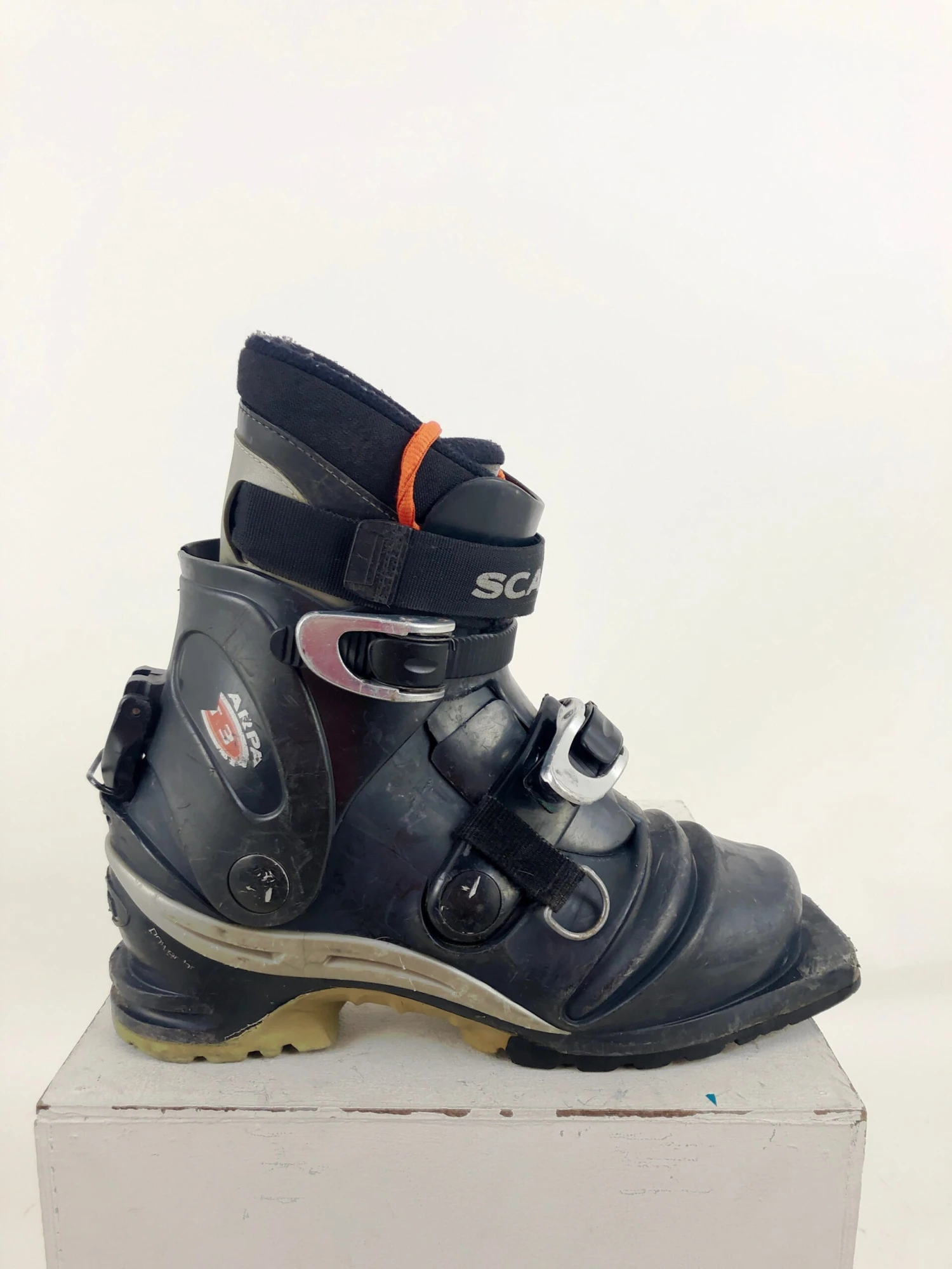 Do you like to go uphill really quickly but think modern boot cuffs go too high? Would you still ski leathers if they were compatible with 75mm bindings? If you answered yes to any of these questions, then the Scarpa T3 is a great boot for you. Ridiculously low profile cuff means your range of motion is par none, plus how can you get shin-bang if your boots don’t reach your shins?ore details.