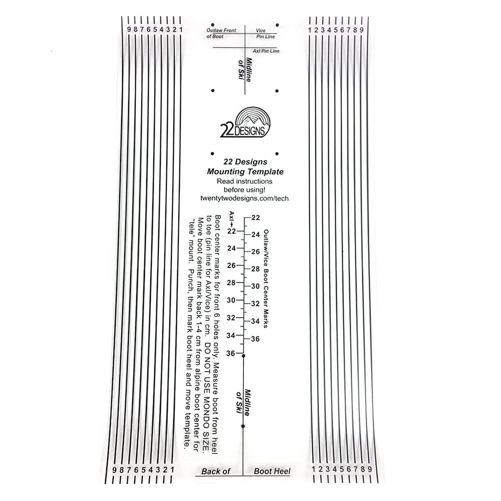 1 – Clear Plastic Mounting Template for Hammerhead, Bombshell, Vice, Axl, Outlaw, Outlaw X, and Lynx bindings from 22 Designs.