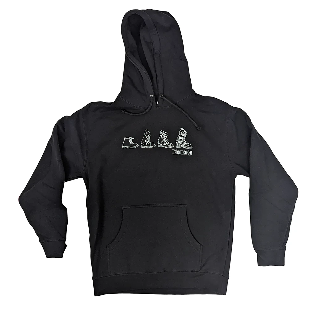 Stay warm and represent the freeheel life. Heavy-weight pullover standard-fit hoodie with front pocket. Freeheel Life “Boot Evolution” art screen printed on the chest.