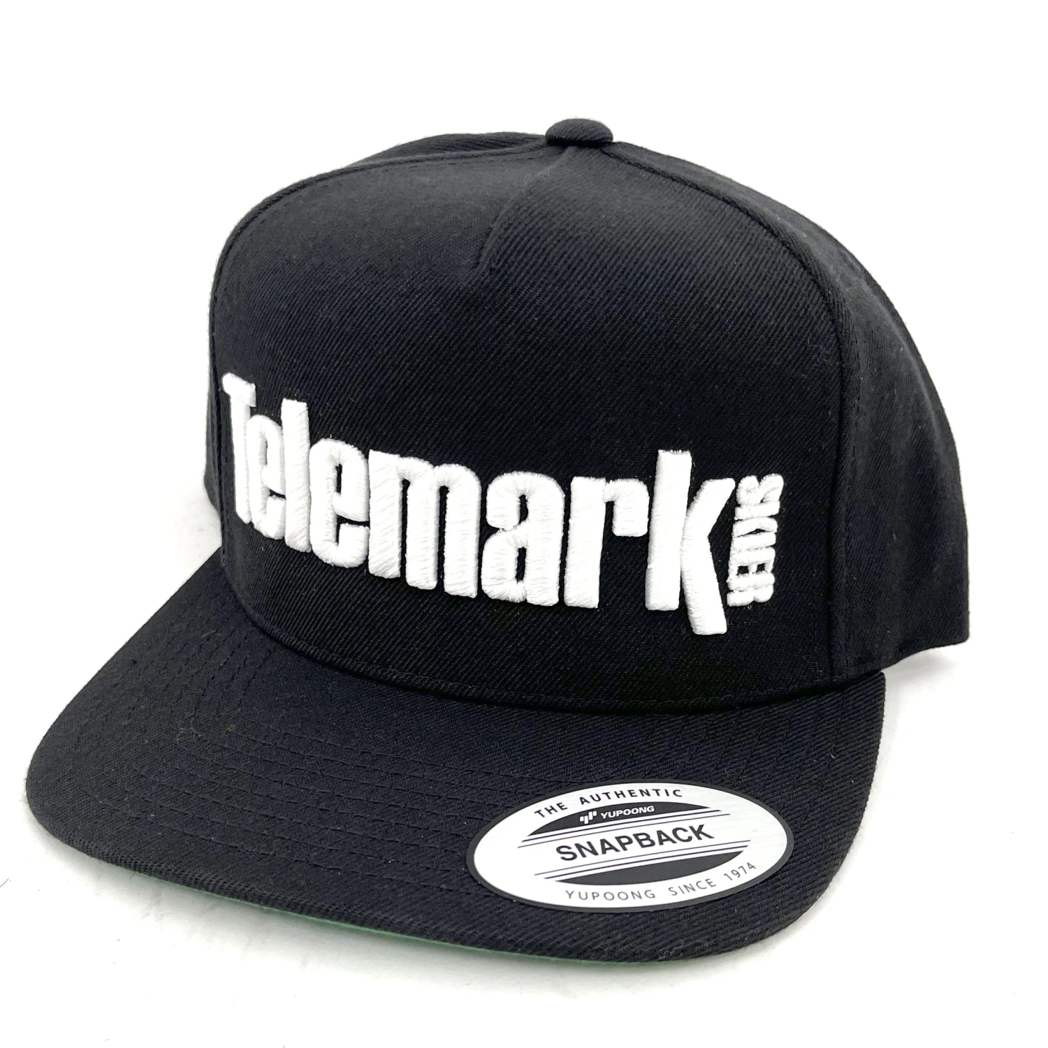Snapback Flatbrim Hat. “Telemark Skier” puff embroidered logo on the front.